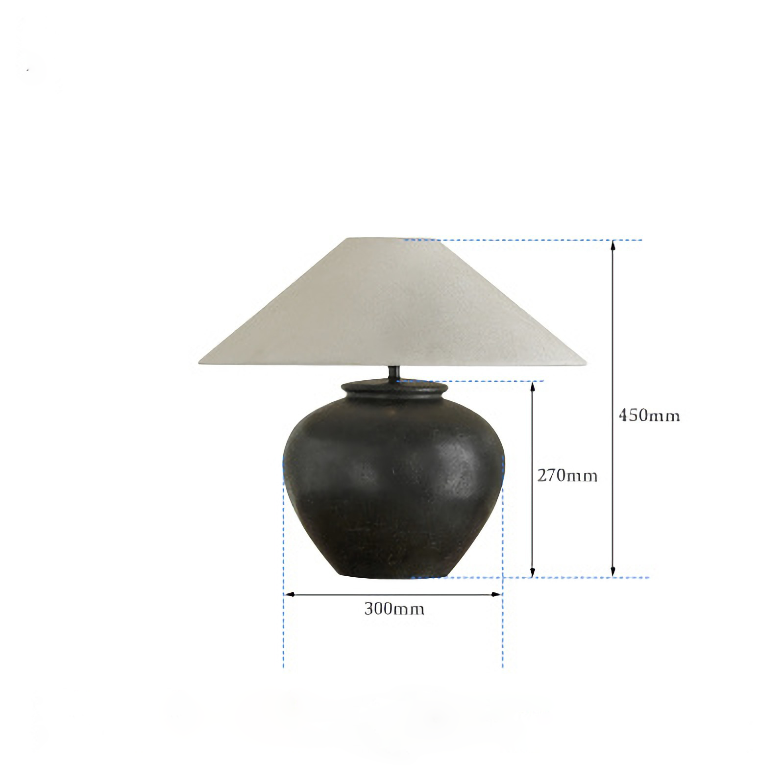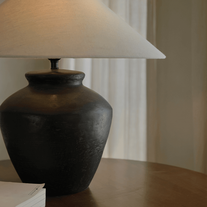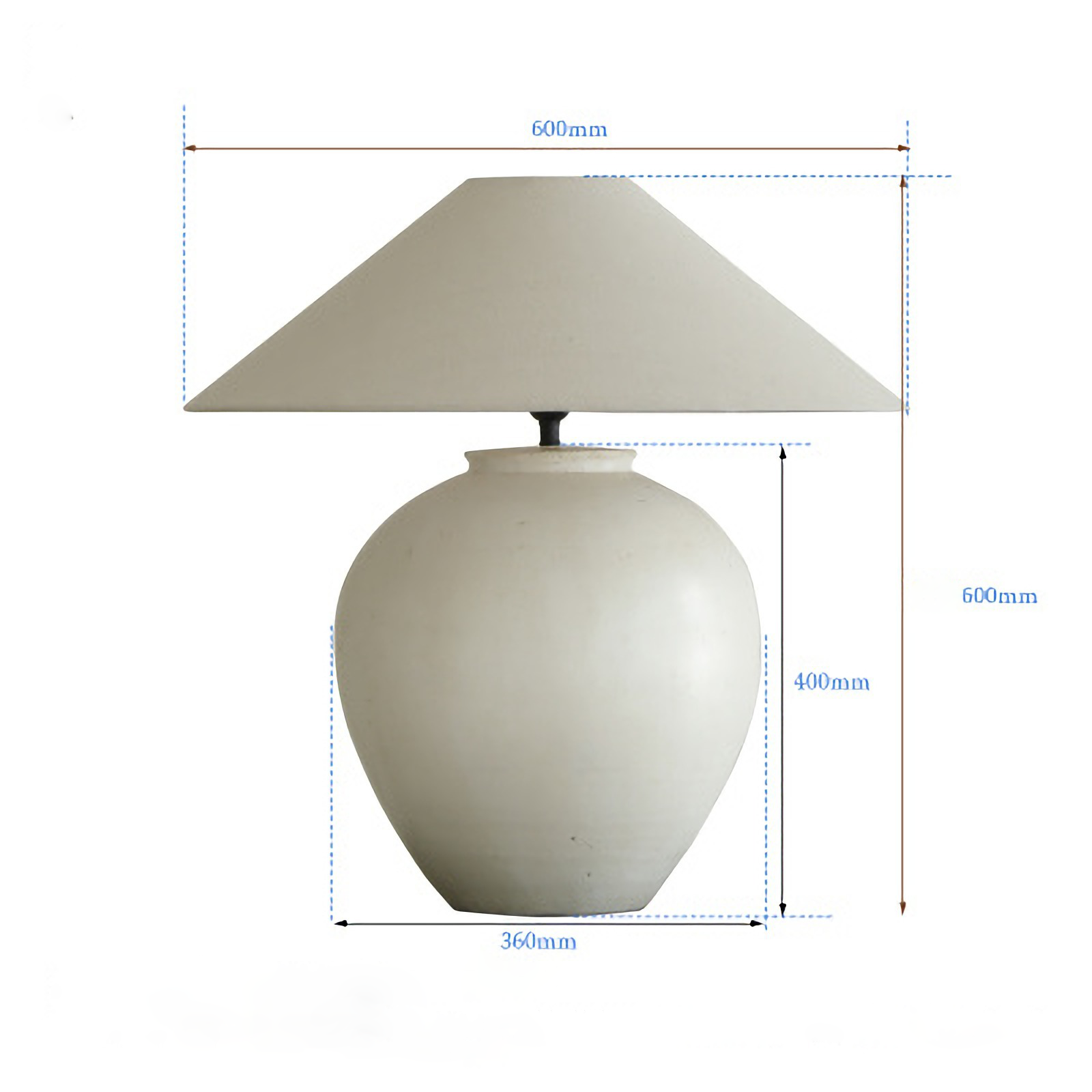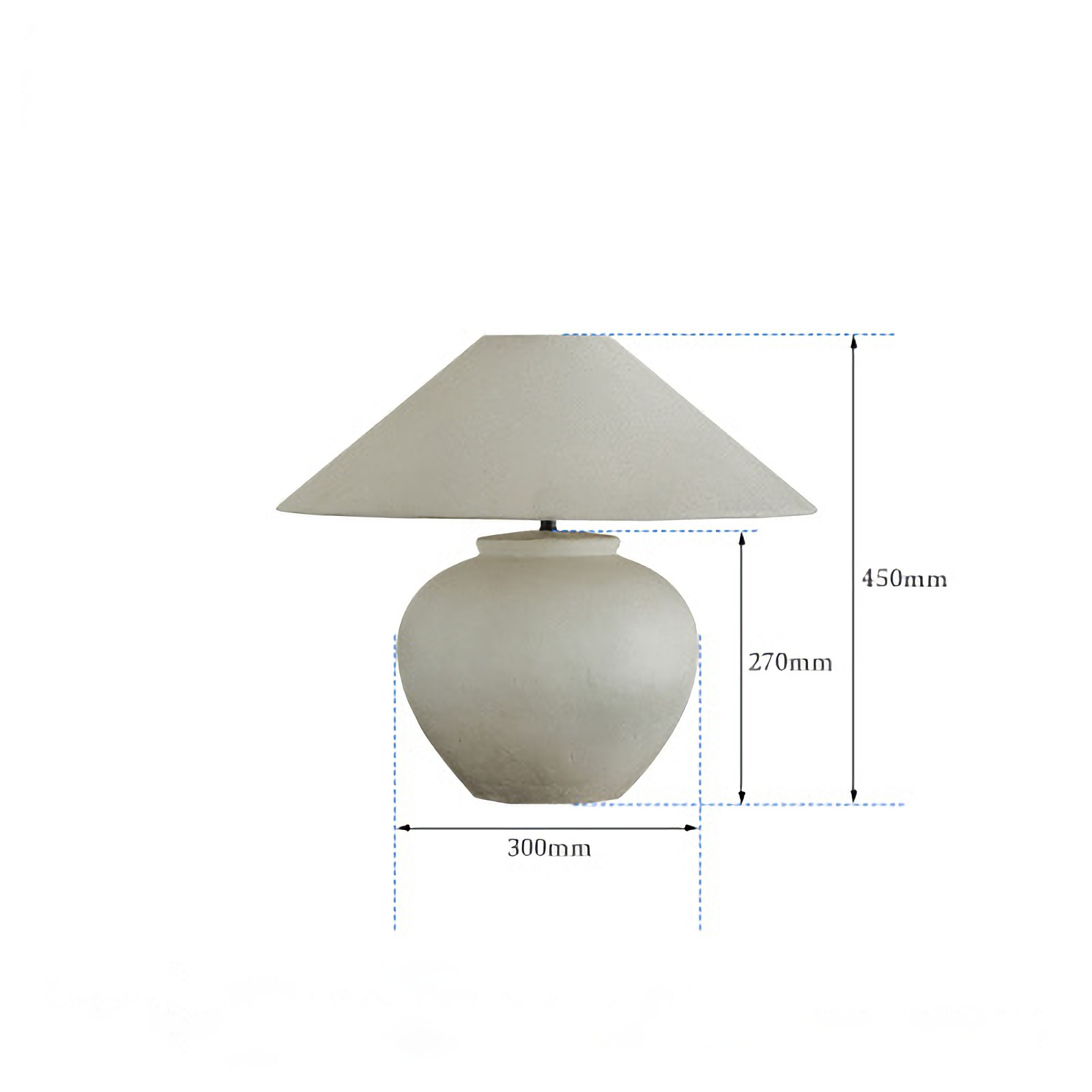 This exquisite lamp combines the natural elegance of a linen lampshade with the rustic charm of a ceramic pot lamp body, all beautifully unified by a sophisticated micro-cement coating process. Its unique craftsmanship brings a touch of artisanal grace to any space.