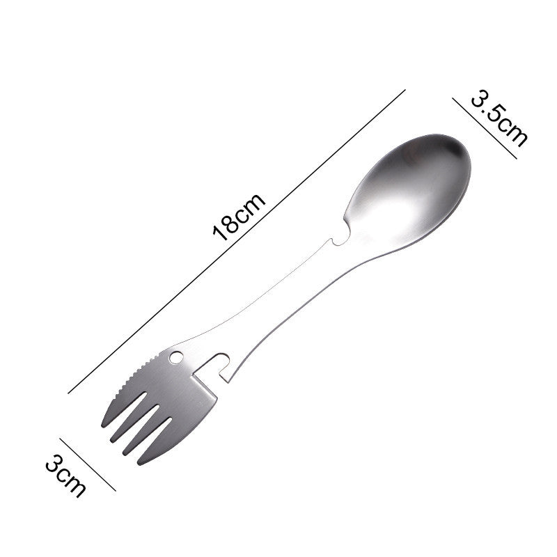 Function: spoon, fork, knife (steak knife), bottle opener, can opener