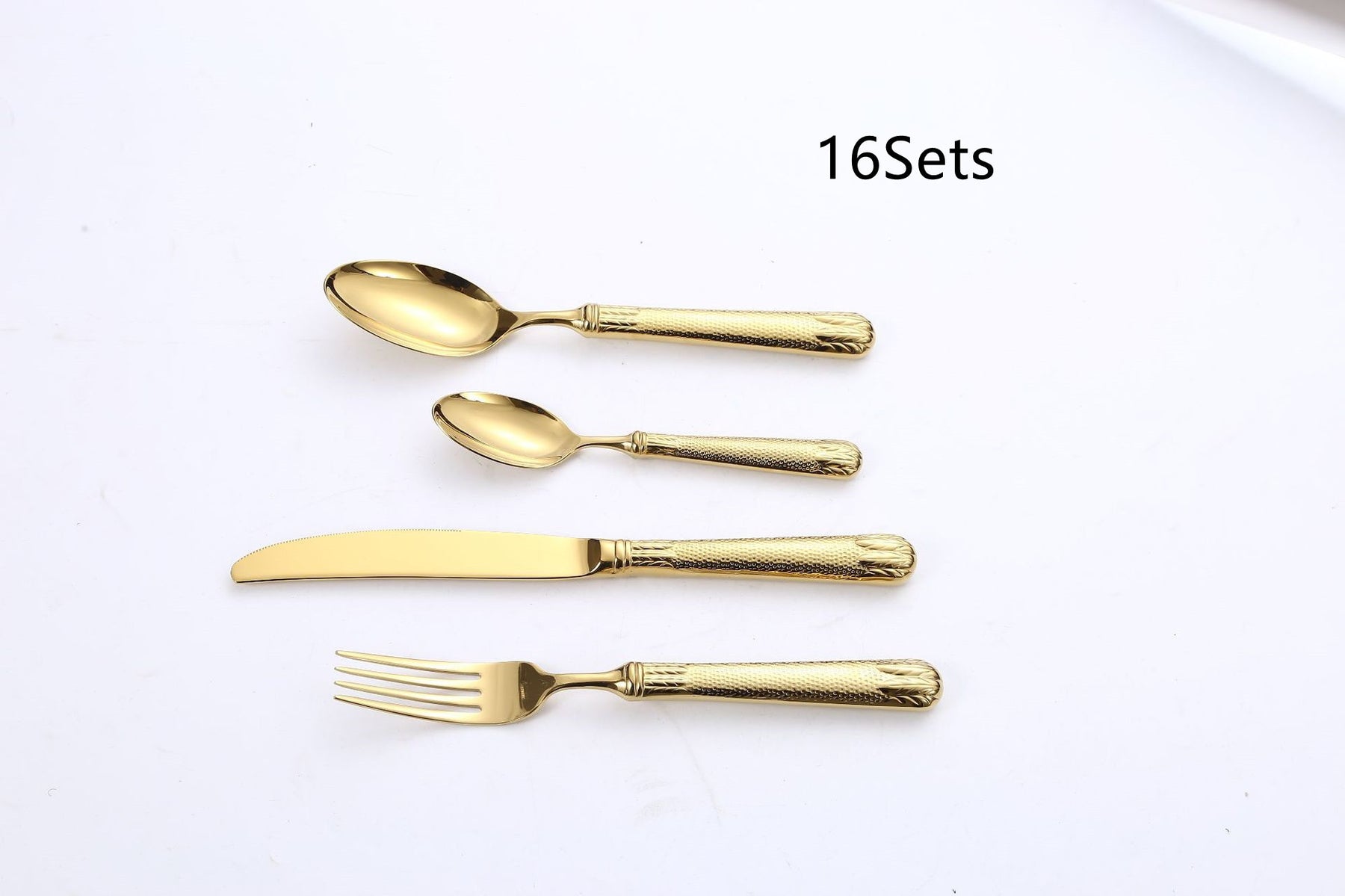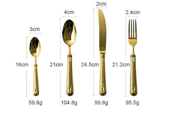 Product information: Material: Knife 420 stainless steel, fork spoon for 304 stainless steel Technology: Titanium plating, relief technology